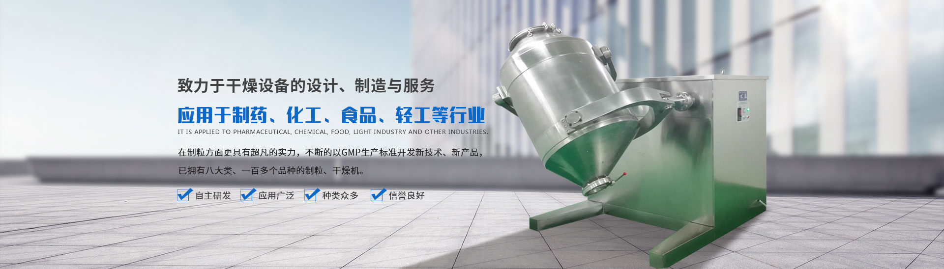 常州市盛得利干燥設備有限公司是國內生產制粒、干燥設備的專業性企業,位于經濟高速發展的江南水鄉——常州,地處滬寧線中段,交通、通訊極為發達.公司多年以來,一直致力于干燥設備的設計、制造與服務。尤其在制粒方面更具有超凡的實力,并不斷的以GMP生產標準開發新技術、新產品。現已擁有八大類、一百多個品種的制粒、干燥機。產品廣泛應用于全國各地的制藥、化工、食品、輕工等行業,在用戶中擁有良好的聲譽。  盛得利將與您共同開創新的事業!